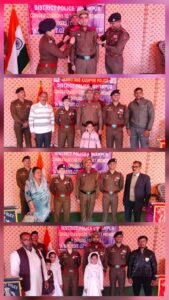 #PeopleFirst #UdhampurPolice डीआईजी उधमपुर–रियासी रेंज एवं एसएसपी उधमपुर द्वारा नवपदोन्नत चयन ग्रेड कांस्टेबलों को अलंकृत किया गया उधमपुर डीआईजी उधमपुर–रियासी रेंज सुश्री सारा रिज़वी, आईपीएस, ने एसएसपी उधमपुर श्री अमोद अशोक नागपुरे, आईपीएस, के साथ आज जिला पुलिस लाइन्स (डीपीएल), उधमपुर में आयोजित एक पिपिंग समारोह के दौरान जम्मू-कश्मीर पुलिस उधमपुर के नवपदोन्नत चयन ग्रेड कांस्टेबलों (एसजीसीटी) को उनके नए रैंक से अलंकृत किया। इस अवसर पर कुल 18 पुलिस कर्मियों को कांस्टेबल से चयन ग्रेड कांस्टेबल के पद पर पदोन्नत किया गया और समारोह के दौरान उन्हें औपचारिक रूप से उनके नए रैंक प्रदान किए गए। पिपिंग समारोह में जिला पुलिस उधमपुर के वरिष्ठ अधिकारी एवं अन्य पुलिस अधिकारी/कर्मचारी उपस्थित रहे। नवपदोन्नत अधिकारियों एवं उनके परिवारजनों को बधाई देते हुए डीआईजी उधमपुर–रियासी रेंज तथा एसएसपी उधमपुर ने विश्वास व्यक्त किया कि पदोन्नत कर्मी आगे भी जनता की सेवा में बढ़ी हुई जिम्मेदारी, समर्पण, अनुशासन और पेशेवर दक्षता के साथ अपने कर्तव्यों का निर्वहन करते रहेंगे।