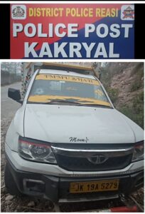 Police Post Kakryal Rescued 6 bovine animals. In the intervening night of 31.12.2025 and 01.12.2026 one Tata load carrier having regd. no. JK19A5279 coming from Maghal side moving towards Udhampur side was stopped for checking at sool naka of Police Post Kakryal, but the vehicle dodged naka and turned back arround towards Maghal katra and tried to flee. It was chased, officials of Police post kakryal and caught but taking benefit of the dark the driver fled away but the vehicle was caught by police. Upon checking, the vehicle was found loaded with 6 buffaloes (bovine animals) tied in cruel manner which were rescued. On this, has been registered under relevant sections of law and investigation underway. The whole operation was conducted by SI Akhilesh Khajuria Incharge Police Post Kakryal under the leadership of SHO Katra Insp Ranjeet Rao, and SDPO katra Sh. Bhishm Dubey and under the supervision of SP Katra Sh. Vipin Chandran. Under the over all supervison SSP Reasi Sh. Paramvir Singh.